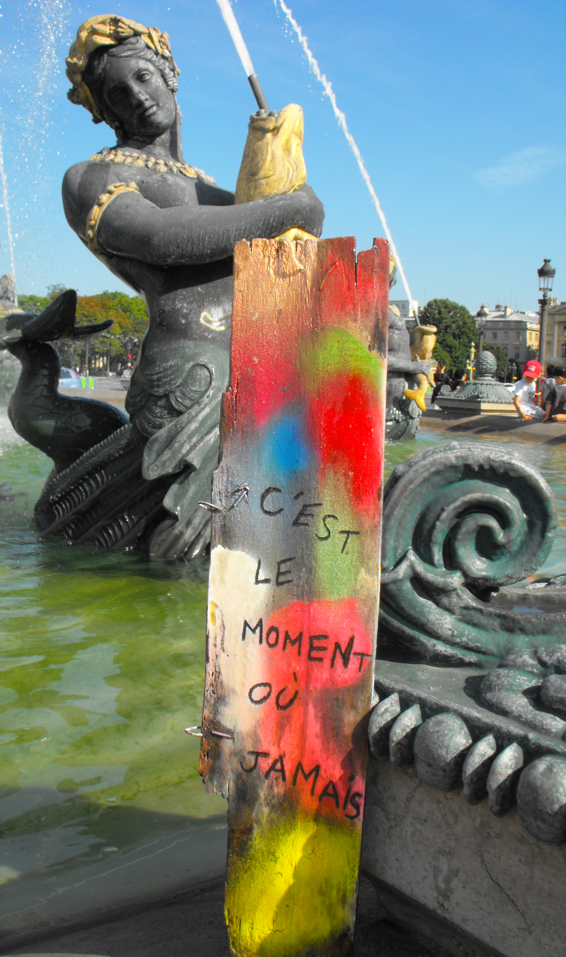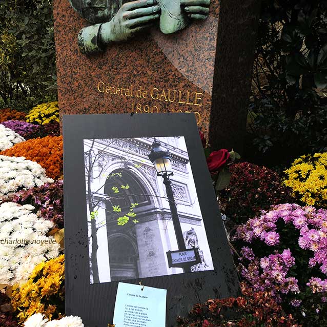Au hasard des repérages, certaines de nos photopoèmes trouvent immédiatement leur place : c'est le cas de notre Place Charles de Gaulle, qui a vaillamment résisté à l'humidité pour un bref mais très pertinent hommage ! Nos installations éphémères se poursuivent en Ile de France, avec une bienveillance et un intérêt des passants bien réconfortants, non la poésie n'est ni démodée ni élitiste, bien au contraire elle parle à tous.