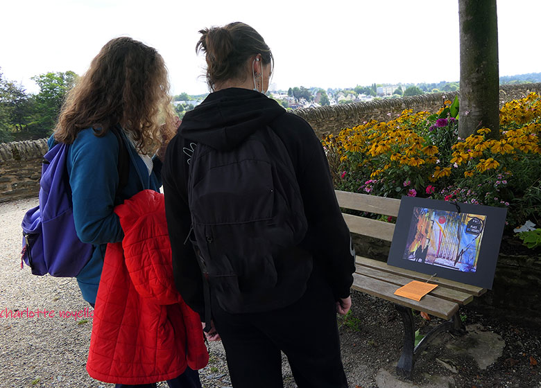 Notre exposition itinérante de photos/poèmes poursuit allègrement son voyage en Normandie, et suscite l'intérêt chaleureux ou amusé des passants. Un petit passage dans le département de la Manche, cette semaine-là c'était sur les remparts fleuris de la ville de Saint-Lô.