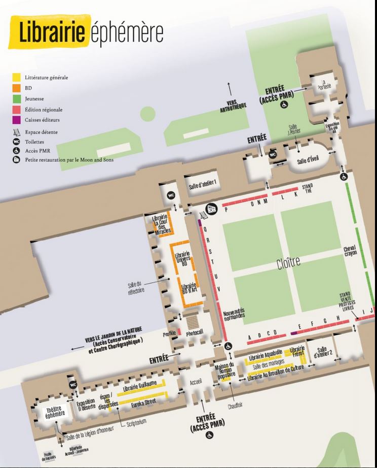 Il sera facile de nous trouver : le stand des Editions Les Ateliers se situe dans le cloître, à la lettre D ! Résumons : c'est le Salon du Livre de Caen (Calvados), c'est dans l'Hôtel de Ville, c'est samedi 10h - 19h et dimanche10h -18h, et l'entrée y est libre bien sûr ! Plus d'infos générales sur le site de la Ville de Caen.