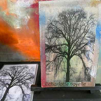 Création de photographies, laques, peintures, gravures, installations éphémères végétalisées.
